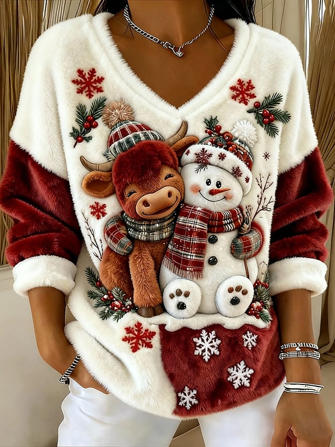 ❤️Buy 3 Get 12% OFF❤️Women's Animal Highland Cow Yeti Art Print V-Neck Top
