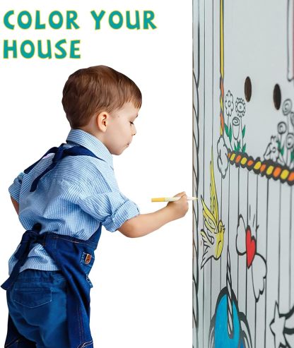 🎨 【CREATIVE AND ADORABLE GIFT】 -  Unleash your child's imagination and improve hand-eye coordination as they interact with functional windows and doors. In addition to being cute, chic and of high quality, the cardboard house is a great gift for children of all ages, providing them with a fun and engaging activity that promotes creativity, imagination and self-expression. This coloring cardboard house makes a great gift for children. This paper house can be used to show your love and appreciation.