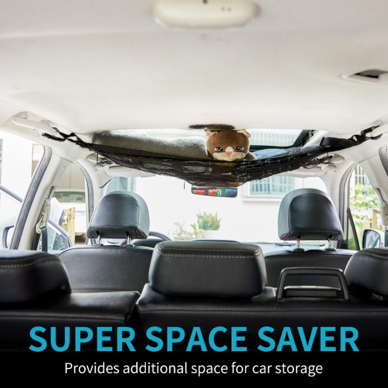 Upgraded Car Ceiling Cargo Net offers a smart storage solution by utilizing unused overhead space. Say goodbye to disorganized items and enjoy a cleaner, more spacious car interior!