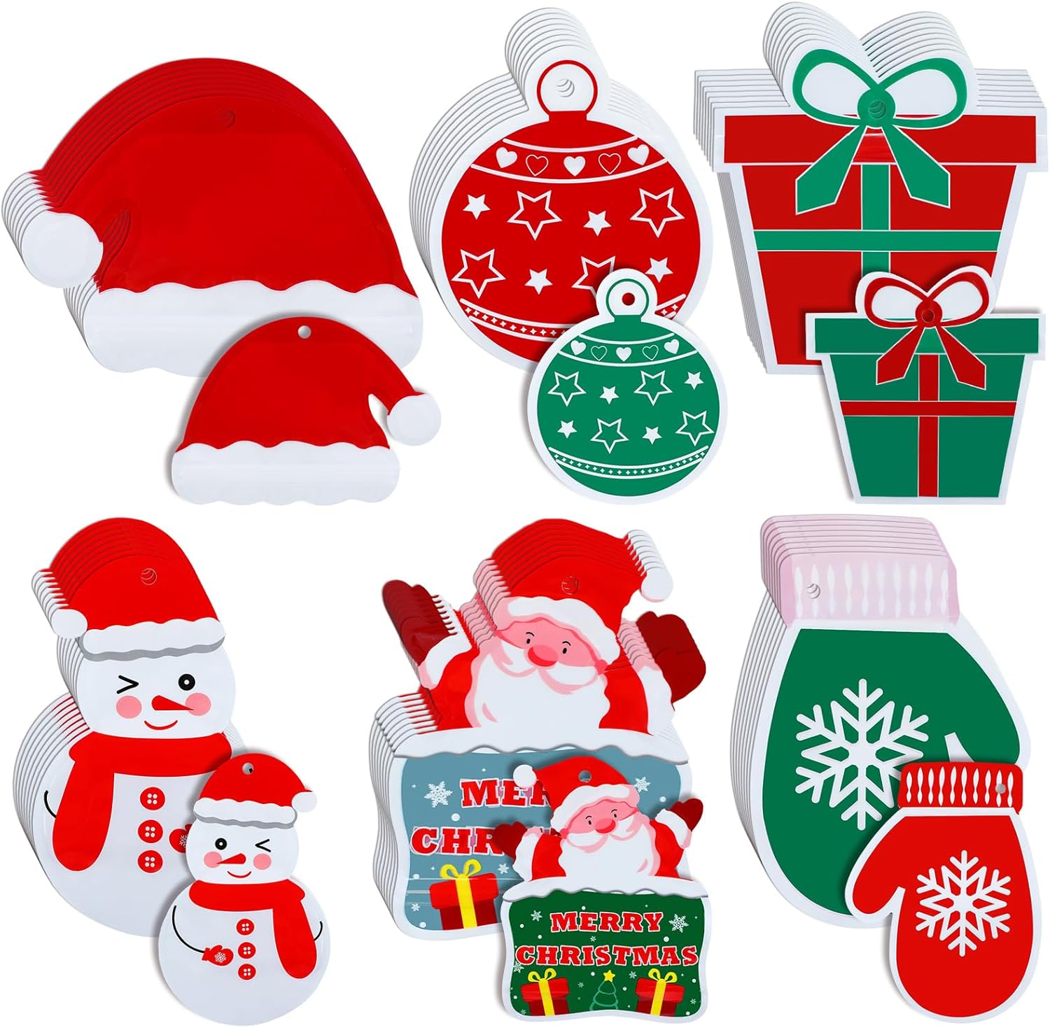 • Featuring 6 creative designs, the delightful combinations include Santa Claus, snowmen, Christmas hats, gloves, spherical ornaments, and gift boxes, which hide the gifts inside and create an element of excitement and mystery.
