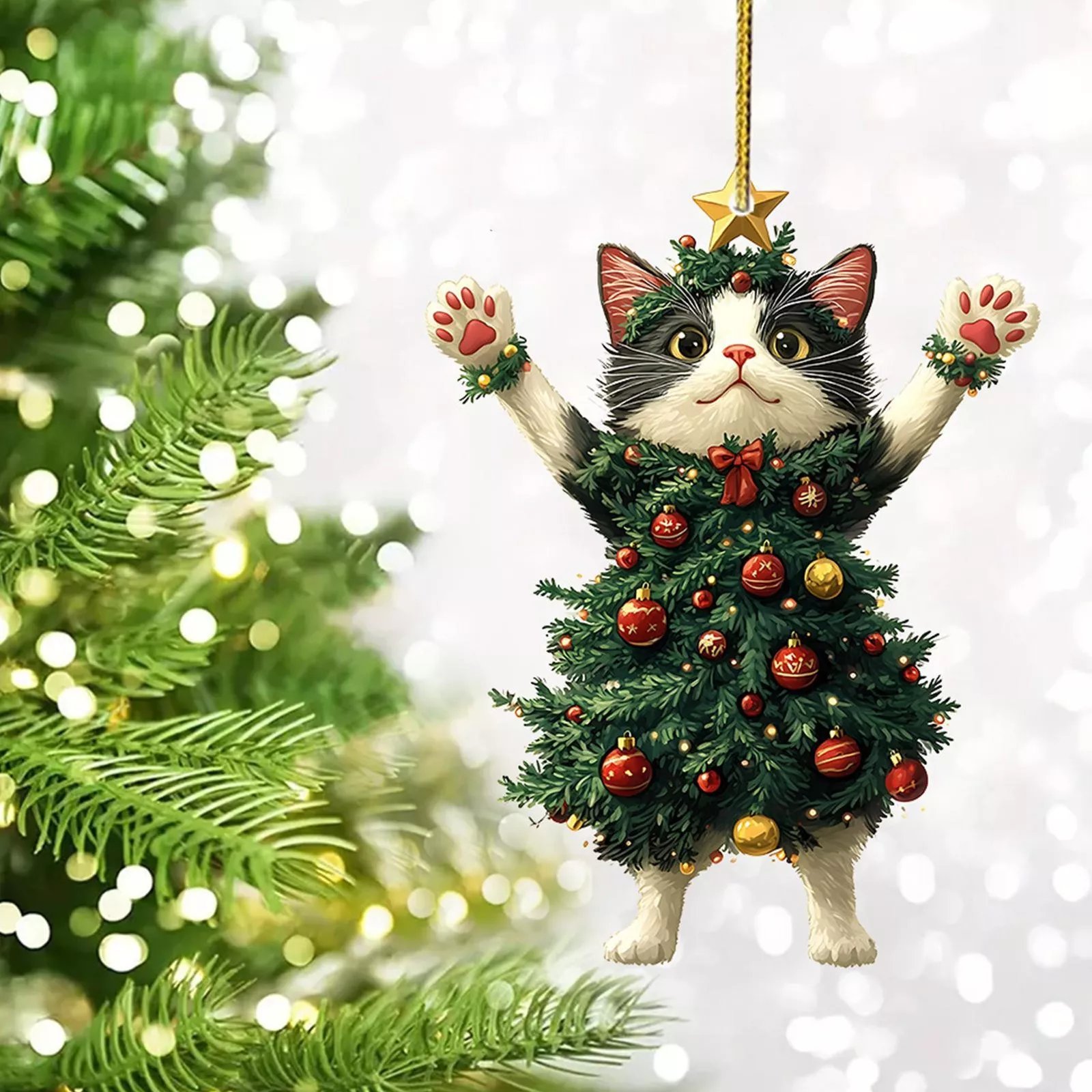 Funny Black and White Cats Christmas Ornament