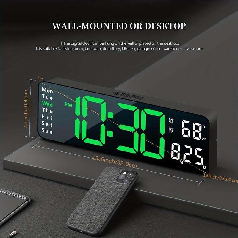 ⚡13" Large Digital Clock with Temperature, Date, Auto DST, Night Light, Auto Brightness Dimmer