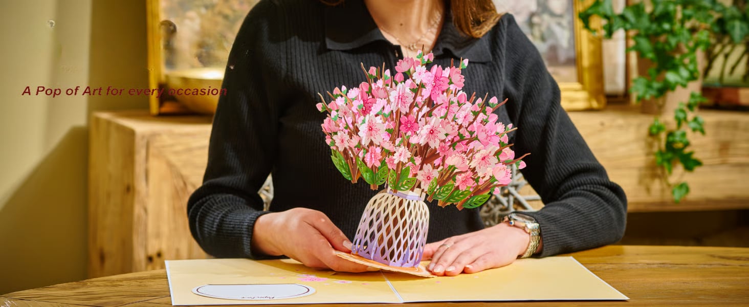 A: The 3D Cherry Blossom Flower Bouquet Pop-Up Card is a stunning token of affection and appreciation, making it an ideal gift for birthdays, milestone celebrations, or even a heartfelt, just-because gesture. The exquisitely crafted cherry blossom motifs symbolize beauty and new beginnings, rendering this card perfect for commemorating life’s special moments. Beyond its use as a greeting card, it doubles as a timeless keepsake that recipients can treasure forever.