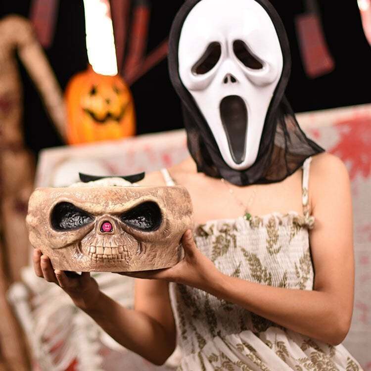 🎃Halloween candy skull bowl with movable skeleton hand